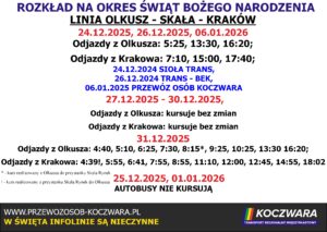 Rozkład Jazdy na Święta Bożego Narodzenia, Nowy Rok i Trzech Króli